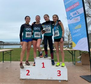 - 🏆Sur le même parcours que le cross court, les cadettes se sont elles aussi bien battus. Elle remportent le classement par équipe grâce à Victoire (3e), Madeleine (12e), Lucie (18e) et Astrid (24e). Il faudra faire partie des 4 meilleures équipes à Yzeure pour la qualifier aux France.