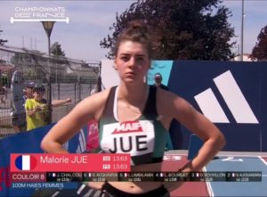 Malorie JUE pour sa 2e participation réalise 13,88 (+3,0) en série du 100m Haies et finit correctement cette longue saison.