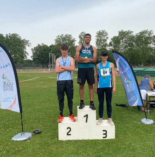 Encore un bon week-end pour les athlètes de l’ACL : plusieurs médailles et records personnels pour nos athlètes lors des championnats AURA organisés à Parilly sur 2 jours pour toutes les épreuves à l’exception du demi-fond dont le Meeting National de l’Est Lyonnais, à Décines, était support. Les conditions météo étaient compliquées, et surtout irrégulières ce Week-End et auraient presque pu gâcher la fête : du vent de face le samedi à Parilly et des bourrasques sur le plateau de Décines n’étaient pas propices aux performances, bien qu’atténuant la forte chaleur, et le dimanche était orageux, la piste de Parilly a été arrosée fortement plusieurs fois dans la journée.