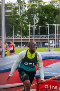 • C’est donc Thibault, qui approche son record sur 120m malgré le vent de face (15″00) et assure 30 points et Paul qui courait pour la première fois un 200 haies et s’en sort admirablement (moins de 29 secondes, avec du vent et des passages douteux jambe droite). 33 points