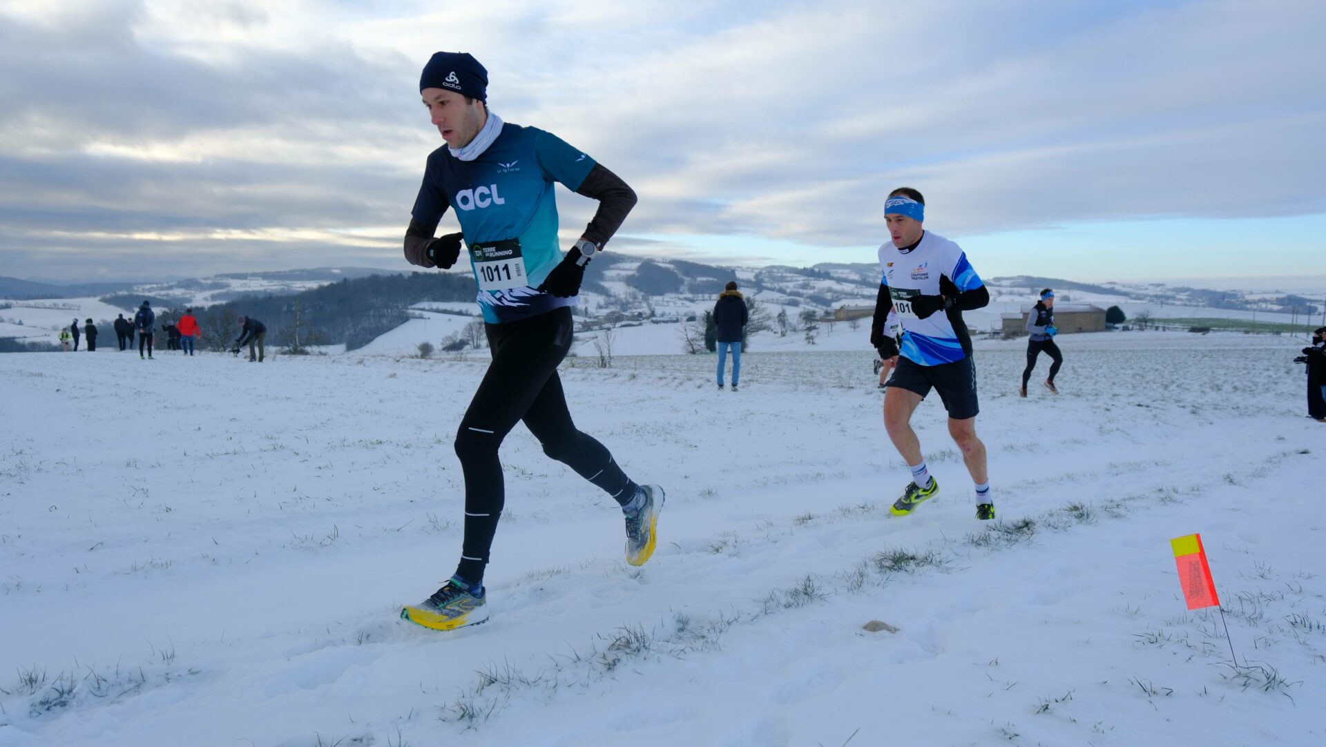 Les trailers avaient le choix entre deux parcours, 16 km / 500 D+ ou 33 km / 1300 D+. Au départ de Saint-Martin-en-Haut, les tracés emmenaient les participants vers L’Aubépin et Sainte-Catherine pour le 33 km, et vers le Signal de Saint-André-la-Côte pour les deux formats. Des paysages somptueux, mais un terrain parfois rendu très technique par la neige et les congères.